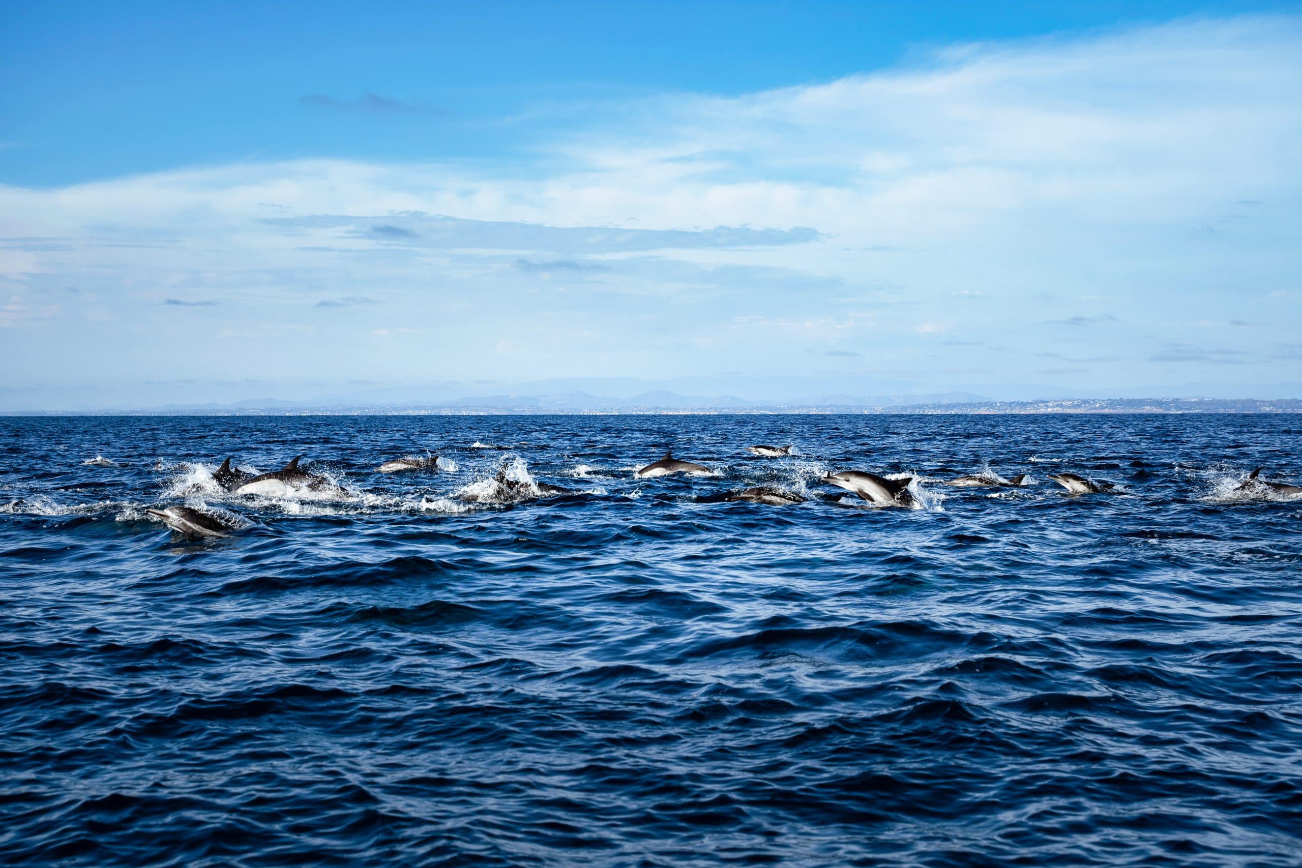 De wateren voor de kust van San Diego vormen een belangrijk leefgebied voor veel zeezoogdieren. Van maart tot mei trekken grijze walvissen richting het noorden, terwijl je in de zomer kans hebt om blauwe walvissen te zien, met een lengte tot wel 30 meter. Soms duikt er een groep orka’s op, en in de nazomer kan zelfs de zeldzame Bryde’s walvis worden gespot. Daarnaast zijn dolfijnen, zeeleeuwen en verschillende zeevogels vaste gasten in dit gebied.