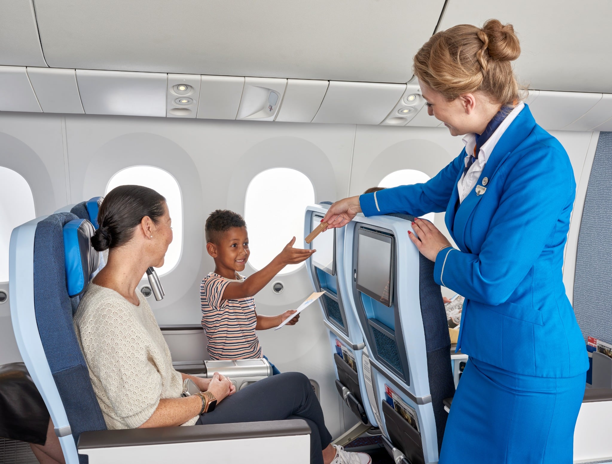 KLM staat bekend om haar combinatie van Nederlandse gastvrijheid en praktische service. Zodra je aan boord stapt, merk je dat alles erop gericht is jouw reis zo comfortabel mogelijk te maken. In Economy Class heb je een persoonlijk entertainmentsysteem met films, series en muziek, en worden maaltijden en drankjes geserveerd. Wie meer comfort zoekt, kan upgraden naar Economy Comfort of Premium Comfort, met extra beenruimte en meer services. Voor wie in alle rust wil werken of slapen, biedt Business Class een luxe ervaring met volledig vlakke stoelen en culinaire maaltijden.