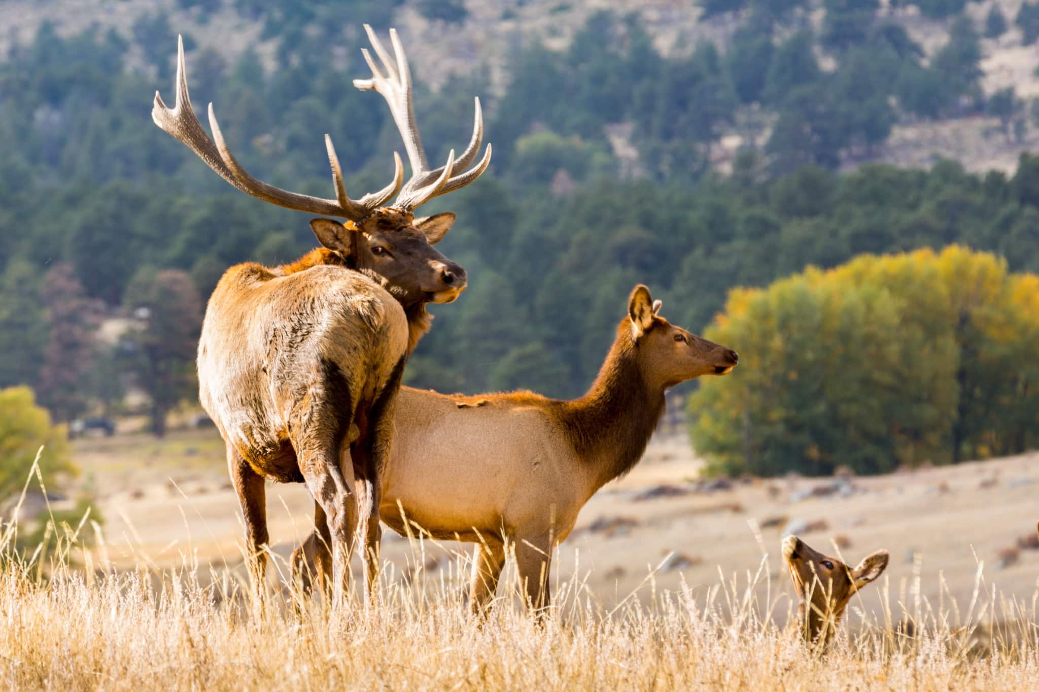 In de lager gelegen gebieden vind je dikke wouden met pijnbomen en sparren. Hier leven zwarte beren, poema’s en coyotes, al zul je die laatste twee zelden zien. Veel opvallender zijn de elanden, die vaak in open valleien als Moraine Park grazen. Ze zijn gewend aan bezoekers, maar blijven wilde dieren, dus altijd gepaste afstand houden.