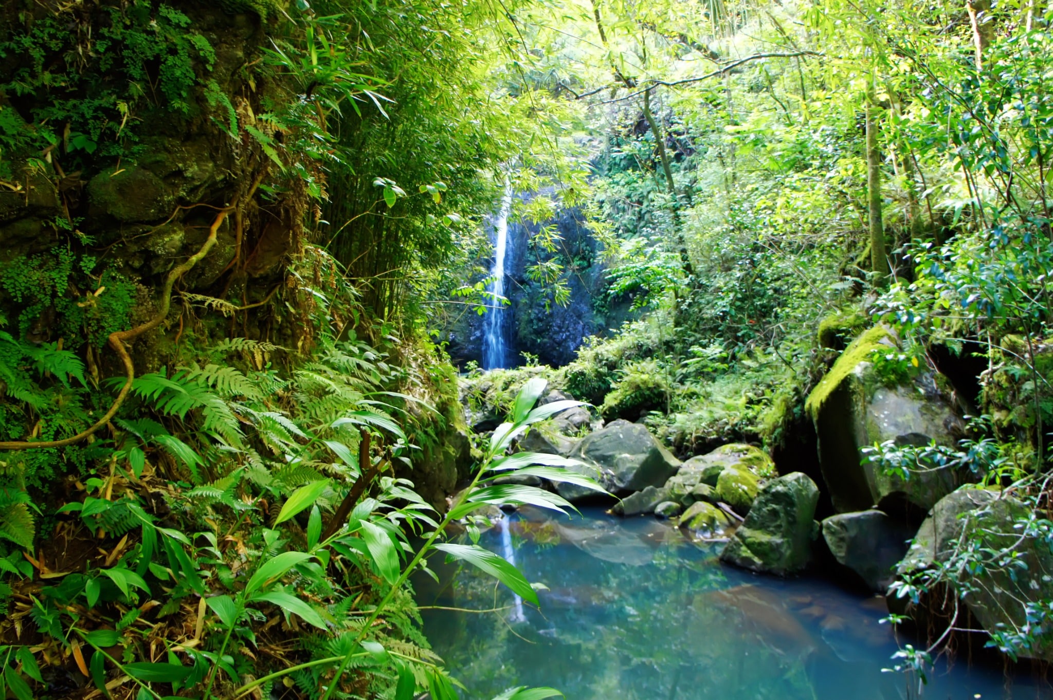 Kauai biedt een ander type overweldiging. Hier is het niet de vuurspuwende aarde die indruk maakt, maar het water. Denk aan tientallen meters hoge watervallen die zich een weg banen door junglekloven. De Nā Pali Coast, alleen bereikbaar per boot, helikopter of te voet, laat kliffen zien die bijna buitenaards ogen. Groene pieken rijzen loodrecht op uit de oceaan. Ook hier hoor je vooral de natuur: het klotsen van golven, het gekwetter van tropische vogels, het geritsel in de bladeren.