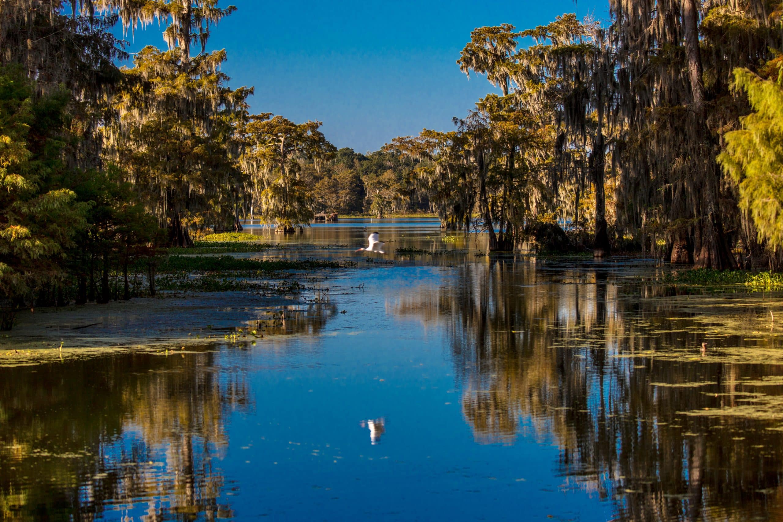 De natuur van Louisiana is zompig, stil en overweldigend rijk aan leven. De staat telt tientallen natuurparken, wetlandreservaten en rivieren. De beroemdste is ongetwijfeld de Atchafalaya Basin – het grootste moerasgebied van de VS. Hier vaar je met een airboat of fluisterboot door smalle waterwegen, langs cipressen met hangend Spaans mos en zie je met een beetje geluk alligators, bevers, wasberen en schildpadden.